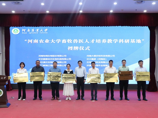 现场,郭战伟为正大集团河南区、商丘美兰生物股份有限公司、河南牧翔生物股份有限公司、中农颖泰林州生物科园有限公司、三门峡瑞之恒药业有限公司、河南大德农牧科技有限公司、兰考禾丰牧业有限公司、济源市伟恒牛业有限公司等8家企业授予“河南农业大学畜牧兽医人才培养教学科研基地”牌匾。动物医学院分别与商丘美兰生物股份有限公司、河南亿万中元生物技术有限公司签署校企合作协议,标志着校企合作向更深层次、更广领域迈进。