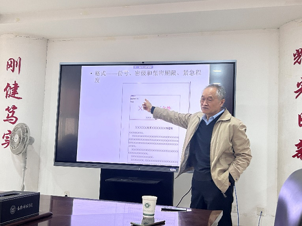 本网讯 (通讯员张红妹 王浩杰)3月27日,为提升学生公文写作能力,助力学生未来职场发展,我院在第一实验楼北330会议室组织开展了公文写作专题培训。本次培训特邀河南农业大学原图书馆馆长、正高级研究馆员吴海峰主讲,部分研究生参加,由辅导员郭明主持。
