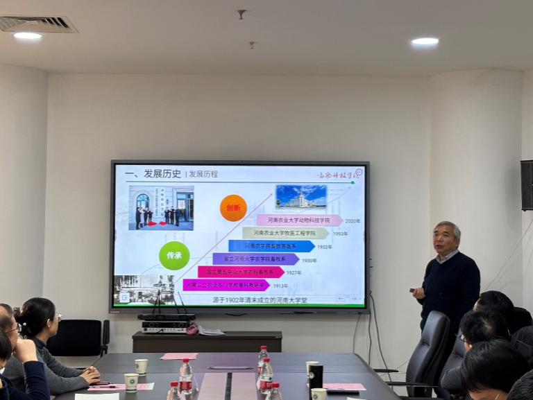 蔡原对我院所取得的发展成就给予了极高的评价。继而,胡江详细阐述了甘肃农业大学动物科技学院的历史沿革、教学管理体系、专业与学科建设、师资力量、青年教师培养以及科研条件等基本情况,并对学院的不足之处进行了坦诚的分析。
