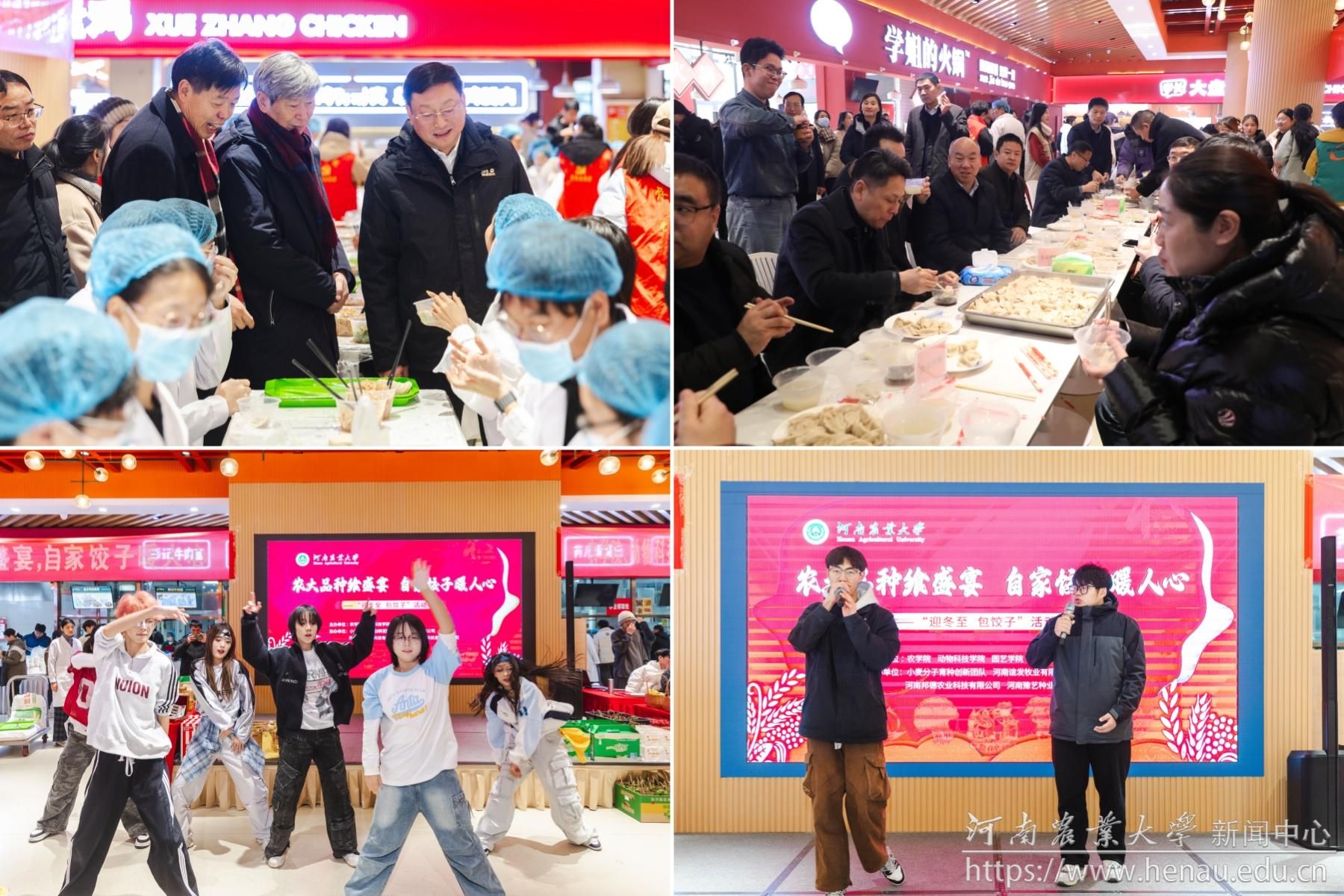 本网讯(通讯员 李鑫怡)12月20日,河南农业大学于龙子湖校区西苑餐厅举办“农大品种飨盛宴 自家饺子暖人心”迎冬至,包饺子活动。校党委副书记、工会主席何松林,副校长杨喜田、刘晓永、赵鹏,学术副校长王道文、汤继华出席活动。学校相关部门负责人和师生代表参加活动。活动由园艺学院党委书记秦素玲主持。