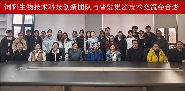 本网讯(通讯员 刘超齐、商恩赐)为加强校企在科研创新与技术应用领域的合作,实现资源共享、优势互补,共同推动行业的高质量发展。我院饲料生物技术科技创新团队与普爱集团,于12月23日在第一实验楼南501会议室成功举办了技术交流会。饲料生物技术科技创新团队带头人尹清强教授及其团队教师和研究生、普爱集团董事长王潇博士、营养总监卢富山博士、研发部经理郑妨、生物发酵部营养师徐李娟,技术研发管理中心配方经理姜东华等相关人员参与。