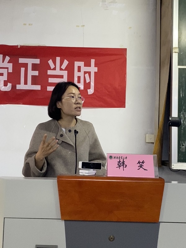 最后,韩笑对本次会议进行了总结,强调了作为大学生要时刻保持对党的敬仰和追求,勉励大家不断提升思想觉悟和政治素养,在今后的学习和生活中以党员的标准严格要求自己。