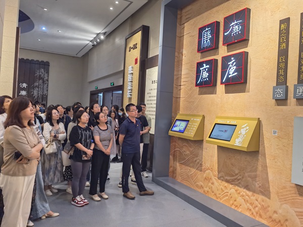 在工作人员的引导和讲解下,全体党员依次参观了“鉴史问廉——中国古代廉政文化”、“光辉历程——中国共产党党风廉政建设”、“警钟长鸣——新时代河南全面从严治党成果”三个主题展厅和中国共产党人的家风档案图片展。每个展厅都紧扣廉政主题,突出文化特色,通过采用传统文化和现代科技相结合的方式,以图片资料、全息投影等形式生动展示了我国传统廉政文化的丰富内涵、我党反腐败斗争的宝贵经验及我省全面从严治党的时代答卷。