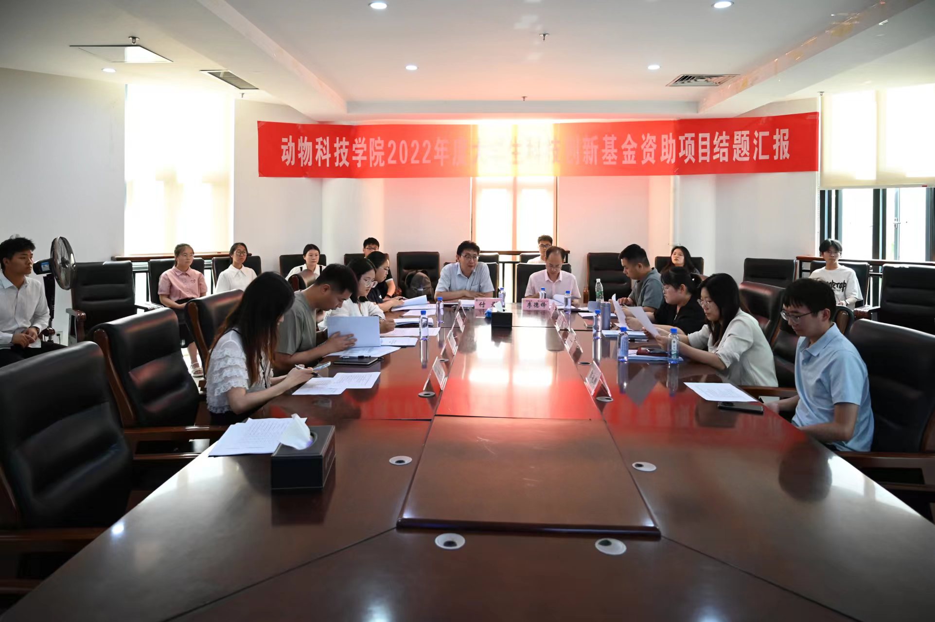 本网讯(通讯员 梁涵晴)为全力提升学生科创能力,强化自主研究与管理,实现学院创新型人才培养目标,6月25日下午,我院于龙子湖校区第一实验楼北330会议室召开2022年度大学生科技创新基金资助项目结题汇报会,农大牧原联合产业研究院执行院长兼学院副院长付彤、动物营养与饲料科学系教师李德锋、崔亚垒、孙浩、金三俊和郭永鹏、动物生产与智慧牧业系教师王克君、水产与经济动物养殖系教师刘变枝和于光晴以及辅导员赵姝灿担任评委,各项目组汇报人参加会议,会议由赵姝灿主持。