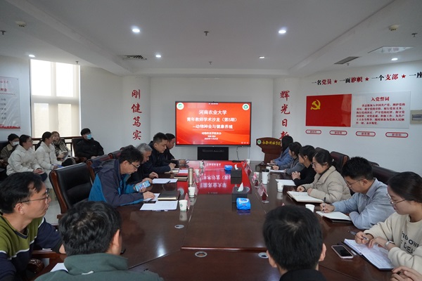 本网讯(通讯员 孔晓慧)11月24日下午,由我院承办的青年教师学术沙龙第5期于龙子湖校区第一实验楼北330会议举行。动物医学院副院长韩立强教授、我院院长李明教授、副院长孙宇教授、副院长付彤教授、院科研秘书李转见教授应邀出席会议。会议由孙宇主持,我院多名教师及研究生参加本次活动。