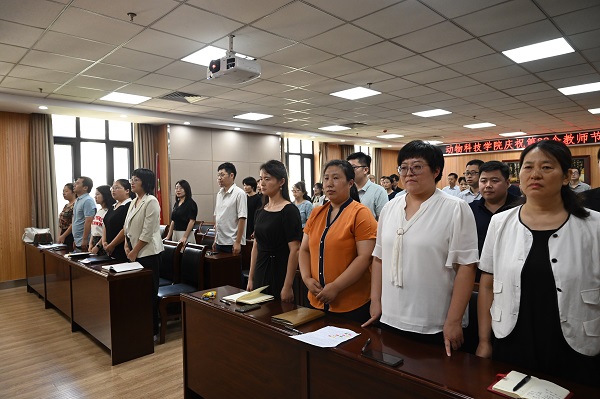 本次会议在雄壮的国歌中拉开序幕。副院长酒梅菊宣读了2022—2023学年校级以上先进个人名单和《动物科技学院关于表彰2022-2023年度“师德标兵”的决定》,副院长付彤宣读《动物科技学院关于表彰2023年度优秀教师、优秀教育工作者的决定》和《动物科技学院2023年度课堂创新大赛获奖教师名单》,副院长孙宇宣读《动物科技学院2022-2023年度优秀党员、优秀党务工作者、先进基层党组织的决定》和《动物科技学院关于表彰2022-2023学年优秀班主任的决定》。