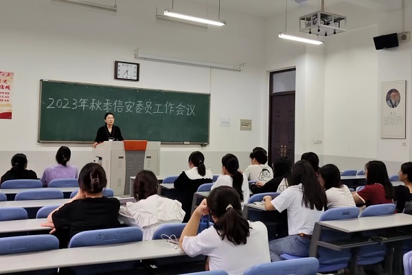 本网讯(通讯员 韩笑)9月13日下午,我院在龙子湖校区教学楼C103召开2023年秋期信息安全委员工作会议。院团委书记韩笑主讲,全体信安委员参加会议。