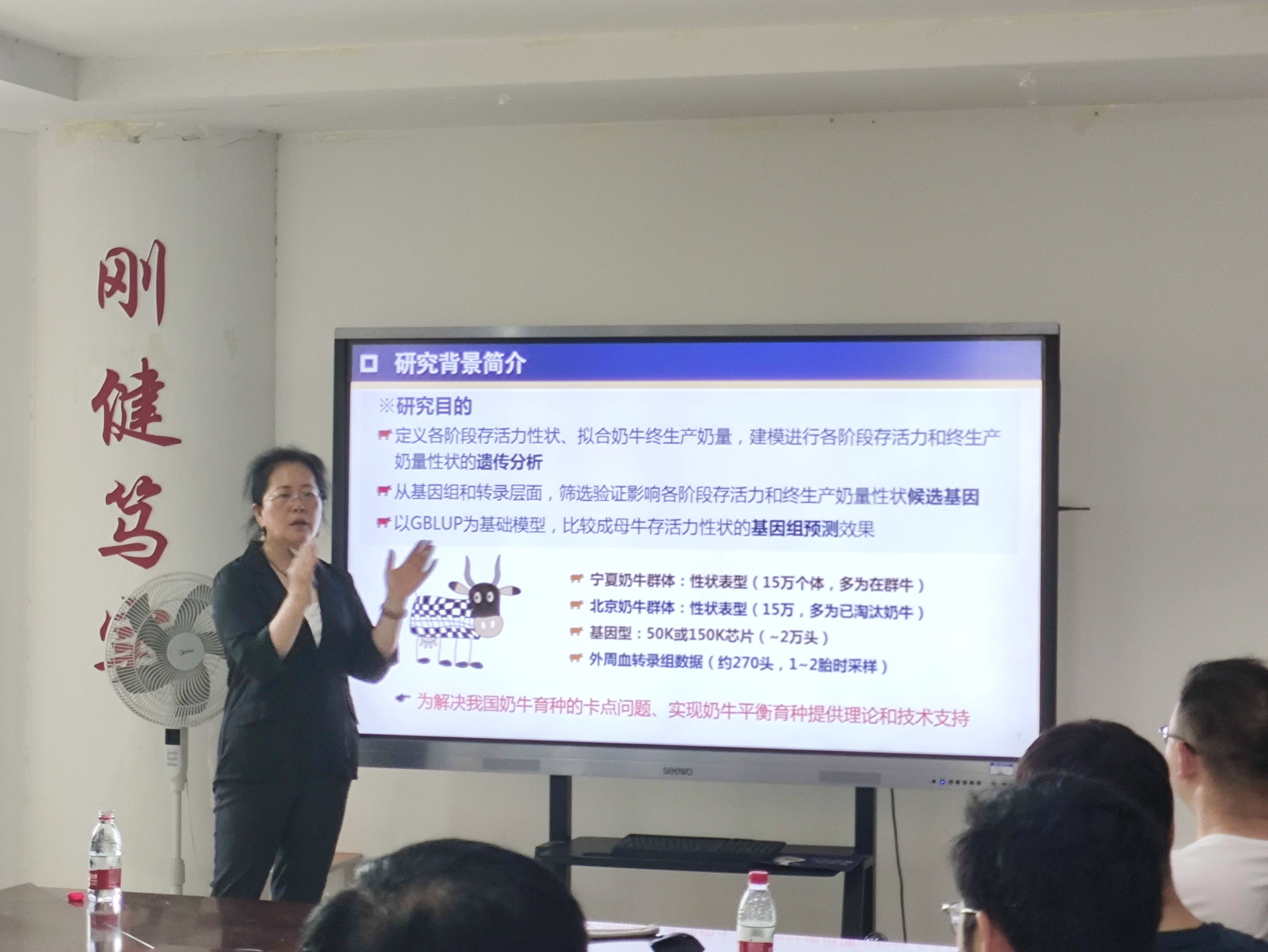 王雅春教授以《中国奶牛各阶段存活力及终生产奶量遗传分析》为题,以清晰而深入的方式解释了奶牛各阶段存活力、终生产奶量性状,拟合奶牛终生产奶量,通过建模进行各阶段存活力和终生产奶量性状的遗传分析。然后,从基因组和转录层面,阐述了筛选验证影响各阶段存活力和终生产奶量性状候选基因。最后,以GBLUP为基础模型,比较成母牛存活力性状的基因组预测效果。为解决我国奶牛育种的卡点问题、实现奶牛平衡育种提供理论和技术支持。在互动环节,王雅春教授详细解答了师生的提问。