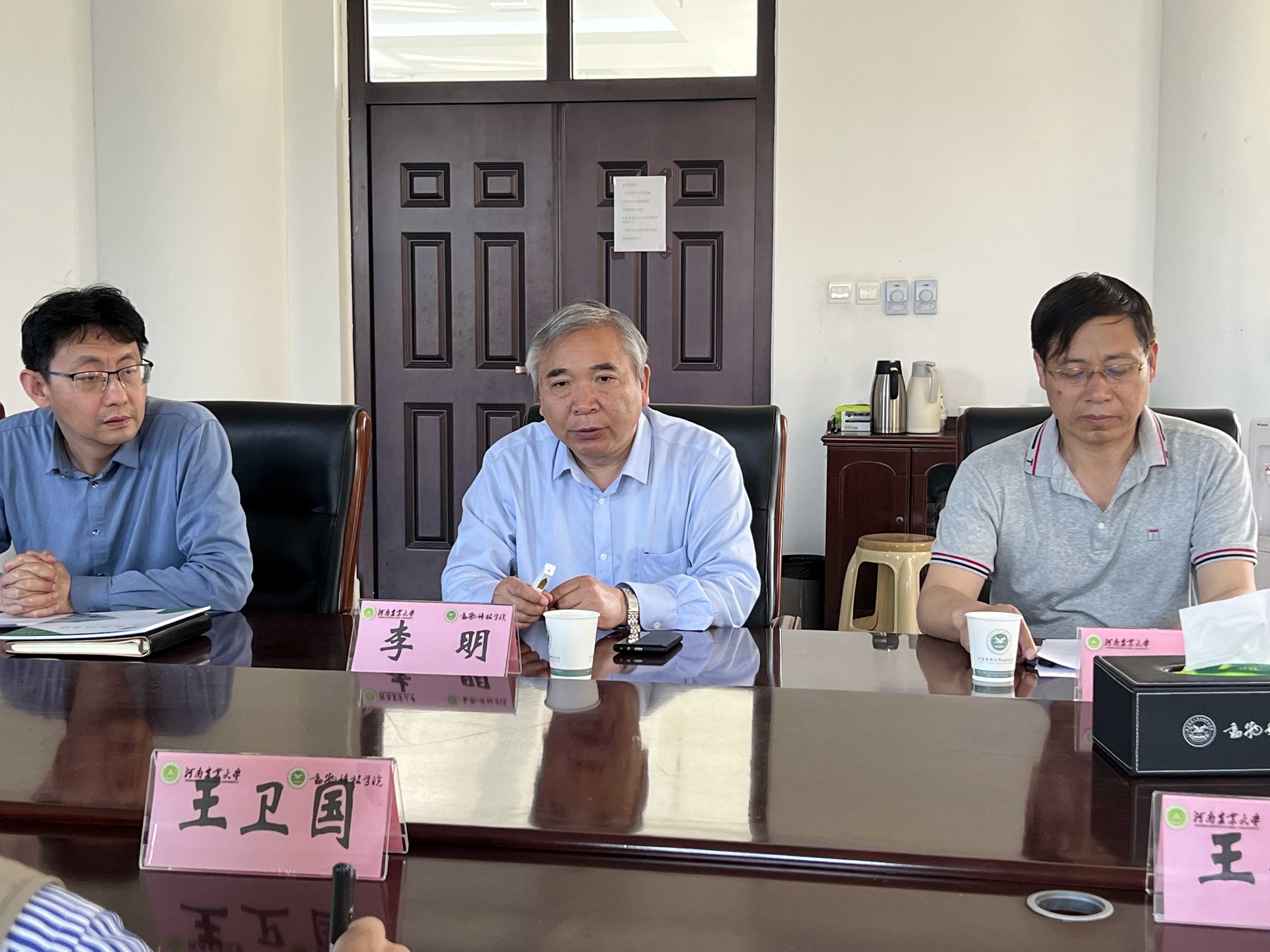 会上,李明院长代表学院对各位专家的到来表示热烈的欢迎,并从学院历史发展、学科水平、师资队伍、科学研究、教育教学和人才培养等方面进行了详细的介绍。王卫国教授对我院的热情接待表示衷心感谢,并简要介绍了中国粮油学会及饲料分会的基本情况。