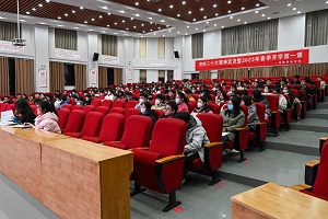 贾磊首先从学科科研、教育教学、师资队伍、人才培养、校企合作等方面回顾了2022年学院取得的优异成绩,帮助同学们树立专业自信。随后,他简要介绍了党的二十大报告中包含的十五个方面的主要内容,重点从党的二十大报告中的新观点、新论断和新思想等内容进行详细阐述。他强调,青年强则国家强,大学生要积极关注时事热点,要在知行合一中主动担当,从身边的点滴做起,把青春干在实处,争做时代青年。他号召大家:树立终身学习的理念,关注国家发展战略,脚踏实地、认真钻研,知难而进、迎难而上,以奋进姿态开启2023年春季学期新征程,用党的二十大学习教育的实际成效和优异成绩把自己锻造成为德智体美劳全面发展的中国特色社会主义事业的建设者和接班人。