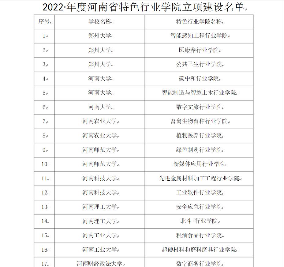 附件:2022 年度河南省特色行业学院立项建设名单(部分)