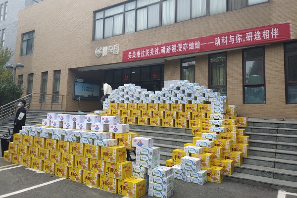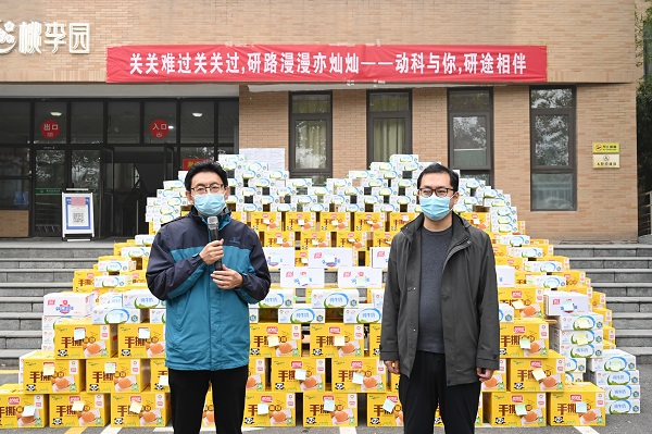 本网讯(通讯员 彭紫萱 杨冉)为帮助我院考研学子坚定备考信心,缓解压力,传递温暖和力量,鼓舞考研士气,11月11日中午,我院于桃李宿舍楼前举办“关关难过关关过,研途漫漫亦灿灿——动科与你,研途相伴”冬季送温暖活动。副院长付彤、团委副书记黄璞及兼职辅导员杨盼盼出席活动。