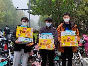 付彤与毕业生们亲切交谈,叮嘱毕业生做好防护,保护好自身安全,关心学生们的饮食、作息、学习等情况,同时询问大家是否有学习和生活上的困难,并强调有问题要及时向学院提出,学院会尽力为大家解决。据悉,学院为每位毕业生们发放了牛奶、面包、火腿肠和口罩等食品和防疫物品,每一份物资上都贴着学弟学妹亲手写的考研祝福便利贴,温情满满。希望同学们健康平安、坚定信心、努力拼搏、考研成功。