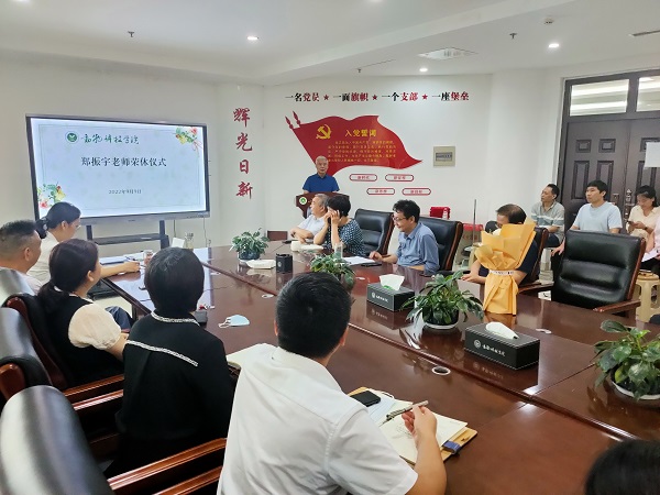 本网讯(通讯员 李品)丹桂飘香、双节之时,9月9日,我院为郑振宇教授举办了荣休仪式,学院领导班子和全体教职工参加,仪式由党委副书记郭娟主持。
