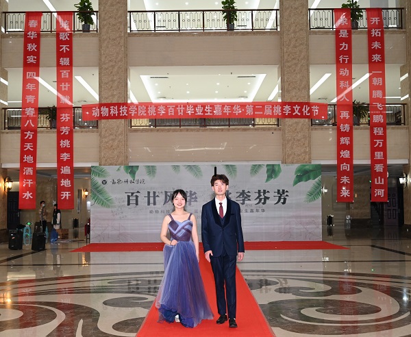 本网讯(通讯员 韩笑)6月的校园,骄阳似火,骊歌奏起,充满着对未来的希望与喜悦,满载着师长的祝福与期许,感受着对大学生涯的不舍与眷恋;随处可见身着学位服、洋溢着活力与微笑的动科人,让毕业季的味道香醇浓郁。6月2日晚的龙子湖校区第一实验楼,欢声笑语不断,由校团委主办、动物科技学院承办的第二届“百廿风华 桃李芬芳”主题桃李文化节暨毕业生嘉年华活动正在进行,师生一同致敬青春,点亮未来,助力毕业学子满载希望顺利起航。