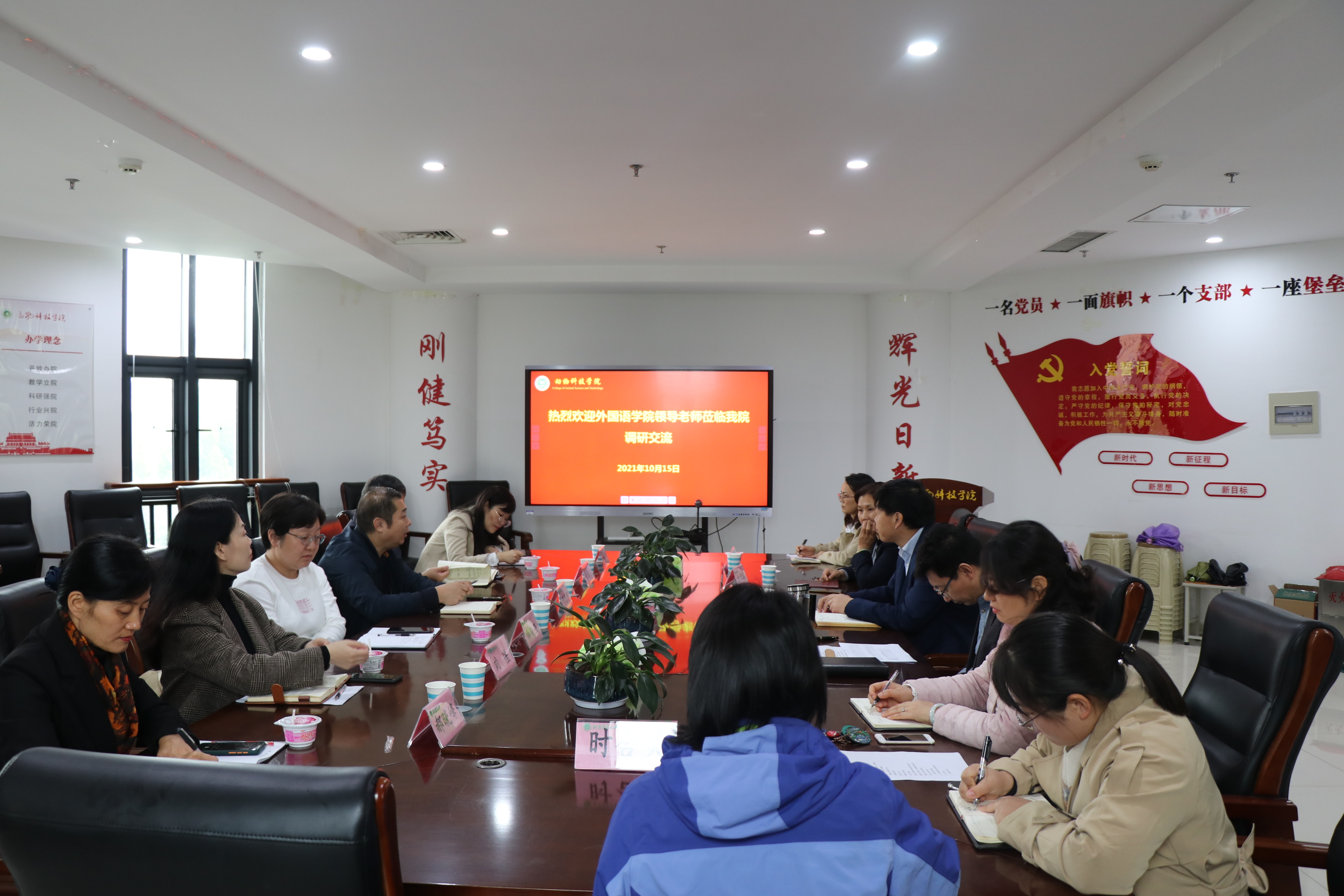 本网讯(通讯员 崔亚垒)10月15日下午,为推进我校大学英语教学改革,实施分级教学试点,教务处副处长薛晓亚、 外国语学院党委书记邓振营、院长张俊杰、大学英语教学部主任刘佳、院党政办主任郝晓峰、教学秘书吴玲等一行赴我院开展大学英语教学改革推进会。我院党委书记贾磊,副院长酒梅菊和付彤,各专业教学主任及青年骨干教师参加了此次会议。