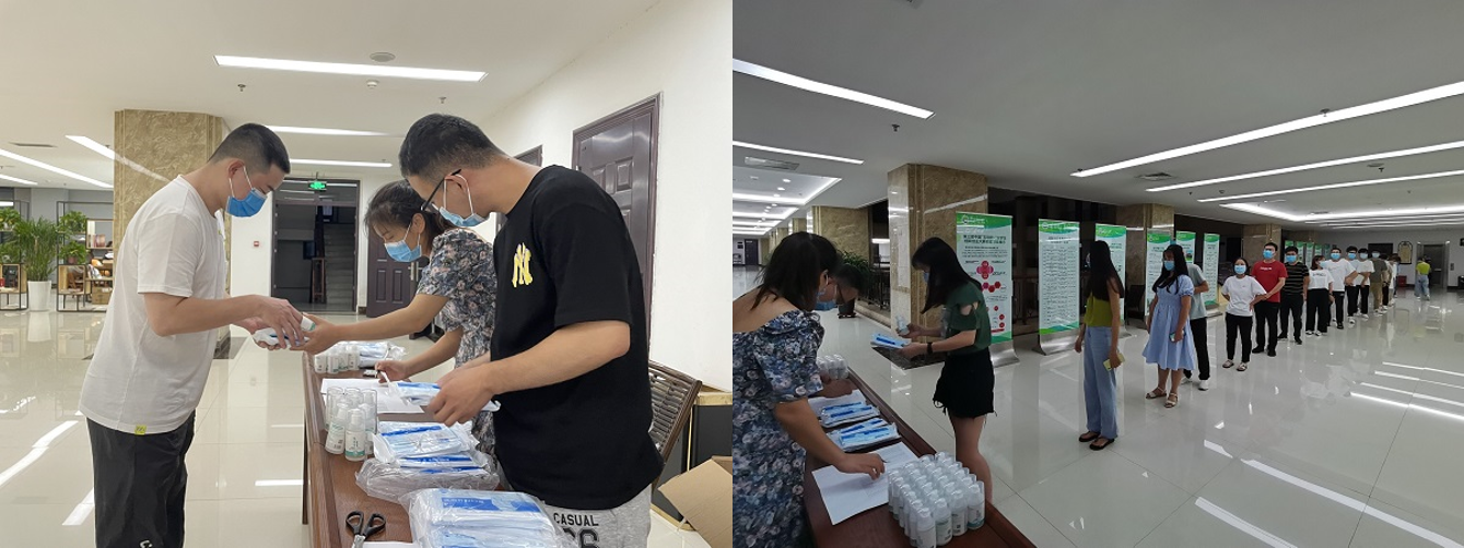 当晚,学院为留校学生统一发放口罩、消毒凝胶等防疫物资,在送上关心慰问之时,再次嘱咐大家特殊时期,遵守管理,提高警惕,携手并肩,同心战疫。