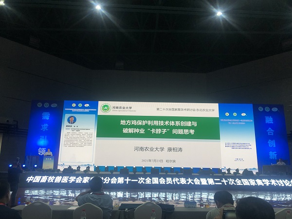 中国畜牧兽医学会家禽学分会第十一次全国会员代表大会暨第二十次全国家禽学术讨论会于2021年7月22-25日在黑龙江哈尔滨召开。大会由中国畜牧兽医学会家禽学分会主办,东北农业大学动物科学技术学院承办,我校我院康相涛教授、田亚东教授、刘小军教授、李转见博士、韩瑞丽博士、蒋瑞瑞博士、李文婷博士、张彦华博士等一行8人参加了本次学术会议。会上,康相涛教授作了题为“地方鸡保护利用体系创建与破解种业“卡脖子”问题思考”的大会报告。期间召开了第十一次全国会员代表大会及理事会换届选举和新一届理事全体会议,康相涛教授再次当选为中国畜牧兽医学会家禽学分会第十一届理事会副理事长,田亚东教授和李转见副教授分别当选常务理事和理事。