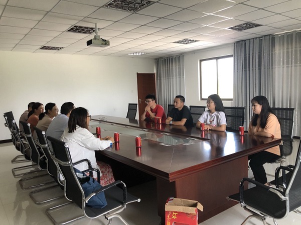 本网讯(通讯员 张彦华)7月26日,在我院党委副书记郭娟、副院长田亚东带领下,韩瑞丽教授、李东华博士和张彦华博士一行5人,赴兰考晓鸣禽业为实习生送去关怀,晓鸣禽业青年鸡场负责人和孵化场负责人及我院2018级动科一班实习生共同座谈。