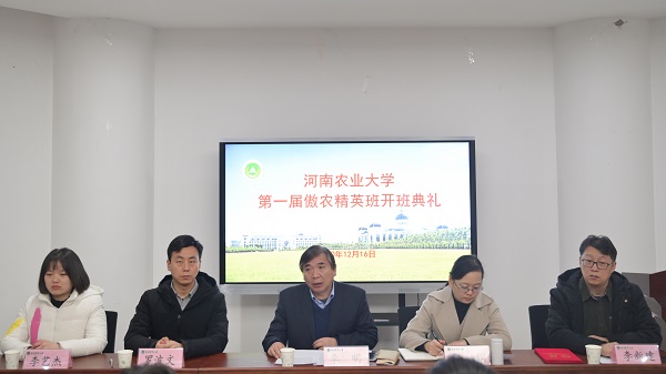 本网讯(通讯员 魏梦雅)12月16日晚,我院在第一实验楼530会议室举行第一届“傲农精英班”开班典礼。傲农集团人力资源中心人才开发部总监罗波文,傲农集团河南傲农人事经理李艺杰,院长李明、党委副书记郭娟、党政办公室主任李新建和团委副书记黄璞出席开班典礼。仪式由郭娟主持。