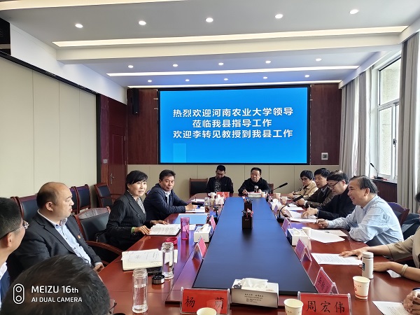 副校长康相涛教授介绍学校的基本情况,希望发挥河南农业大学在农业领域的优势,进一步促进校企合作、校地合作,助力乡村振兴,决胜脱贫攻坚,促进县农业结构转型升级,为正阳县农业发展、农村建设、农民增收贡献河南农业大学的方案。康相涛代表学校,从加强理论学习、找准工作定位、讲究方式方法和加强自身修养等四个方面对李转见同志挂职期间提出了要求和希望。