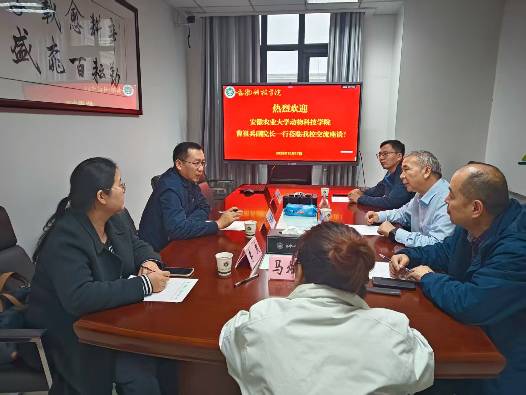 随后曹祖兵院长介绍了安徽农业大学动物科学学院的基本情况,并强调了在高质量发展背景下,加强兄弟院校间合作,尤其是在人才引进与培养方面实现共赢的重要性。双方就共同关心的人才引进与培养议题进行了深入交流。会上,曹祖兵向我院的博士毕业生发出了积极邀请。