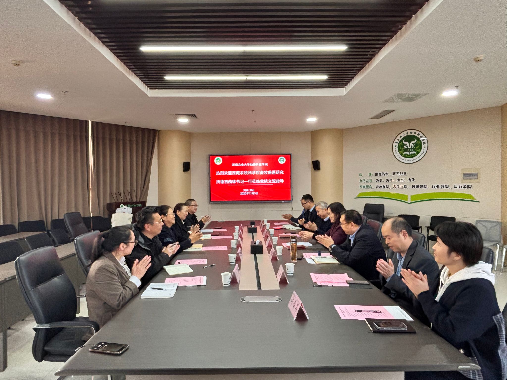 本网讯(通讯员 马炫炫)11月5日,藏自治区农牧科学院畜牧兽医研究所书记德吉曲珍、所长助理索朗达、业务管理科科长德庆卓嘎、藏鸡团队负责人冯静及张立副研究员一行到我院调研交流。我院张利冰书记、田亚东院长、李明主任、李国喜教授、许会芬副教授、张天留老师参加座谈交流,座谈会由孙宇副院长主持。
