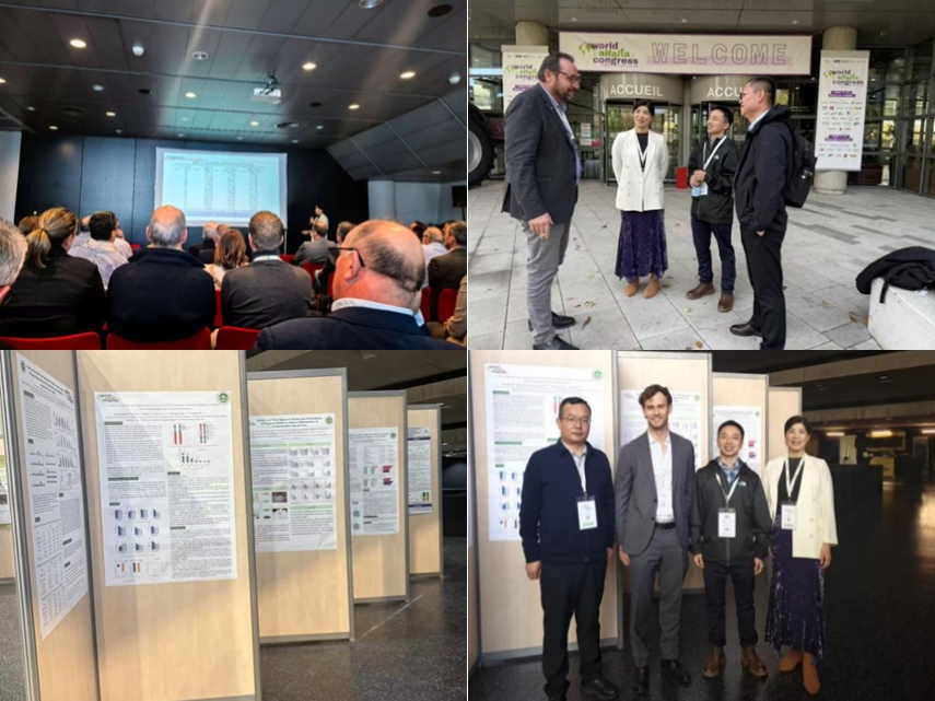 大会以“苜蓿助力回归地球生态边界”为主题,聚焦苜蓿领域前沿科技与产业融合。史莹华教授受邀在动物营养论坛作专题报告,分享其团队多元化苜蓿草产品开发利用成果,其中高蛋白苜蓿叶粉替代豆粕的研究引发热议。团队10项相关研究成果入选会议 Poster 区,全面展现了我校在苜蓿新产品研发与综合利用领域的系统性研究进展。