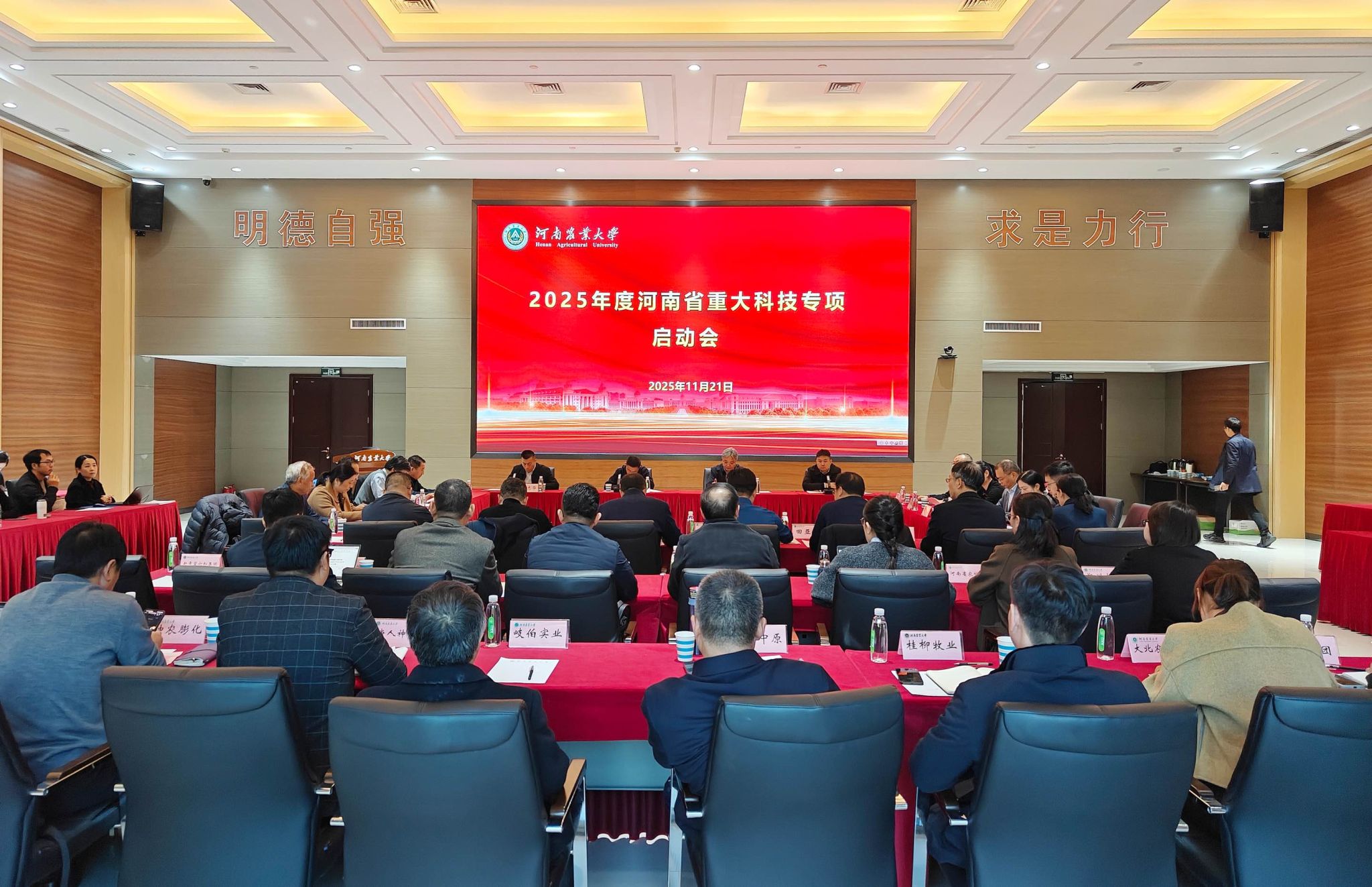 本网讯(通讯员 司雪萌)11月21日,2025年度河南省重大科技专项“豆粕减量替代及饲料加工关键技术研究与应用”启动暨推进会在河南农业大学综合办公楼会议室举行,会议围绕项目总体布局、任务分工与协同推进展开部署。