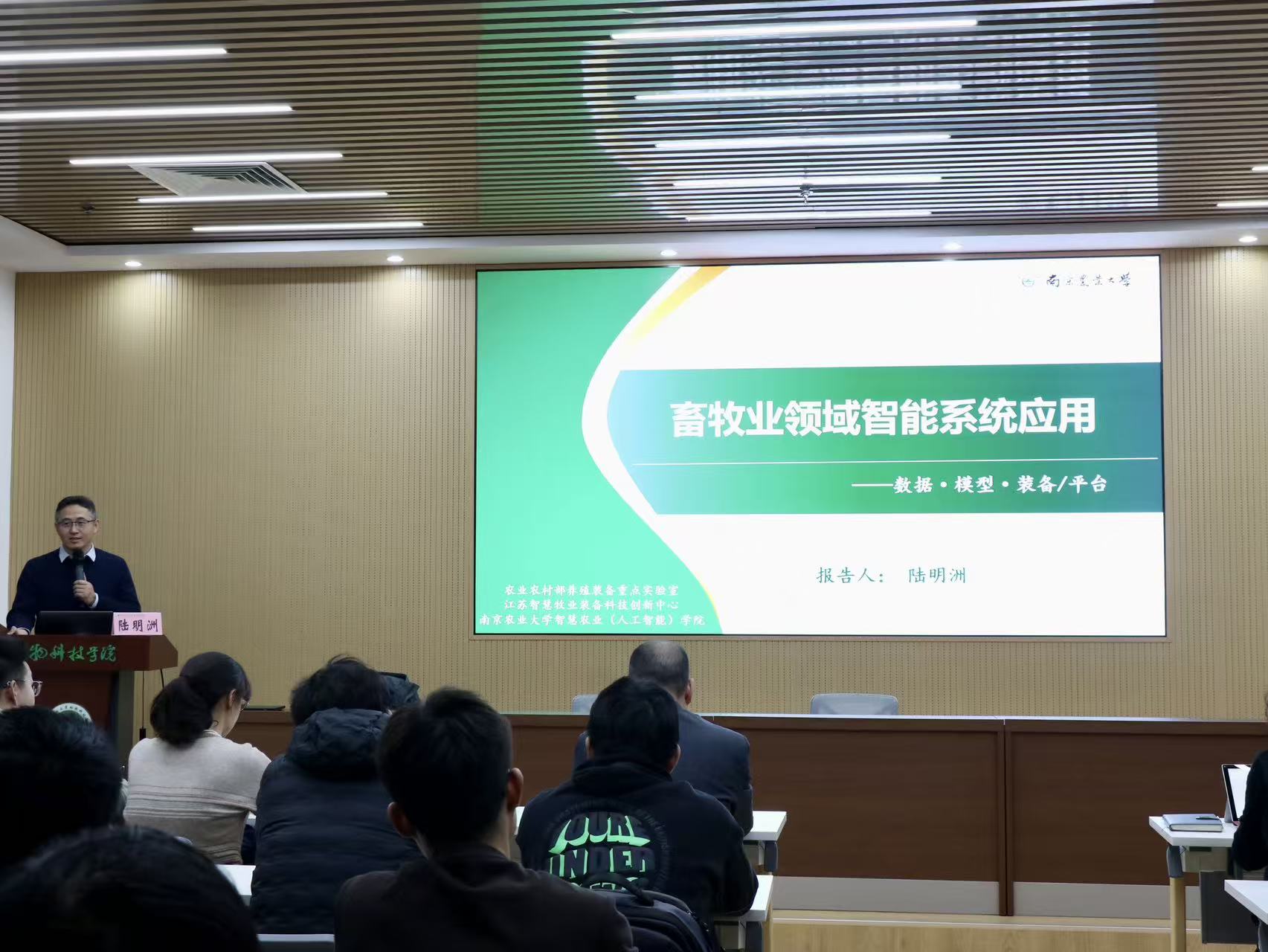 本网讯(通讯员 宫玉杰)2025年11月26日,我院在龙子湖校区第一实验楼南508会议室举办第 206 期“日新论坛”学术交流活动。本次活动特邀南京农业大学陆明洲教授作《畜牧业领域的智能系统》专题报告,会议由副院长孙宇主持,牧原联合产业研究院副院长蒋瑞瑞,学院相关教师、研究生、智慧牧业与工程专业本科生等师生参会,同时本次论坛也吸引了来自机电工程学院、经济与管理学院和林学院的相关师生。