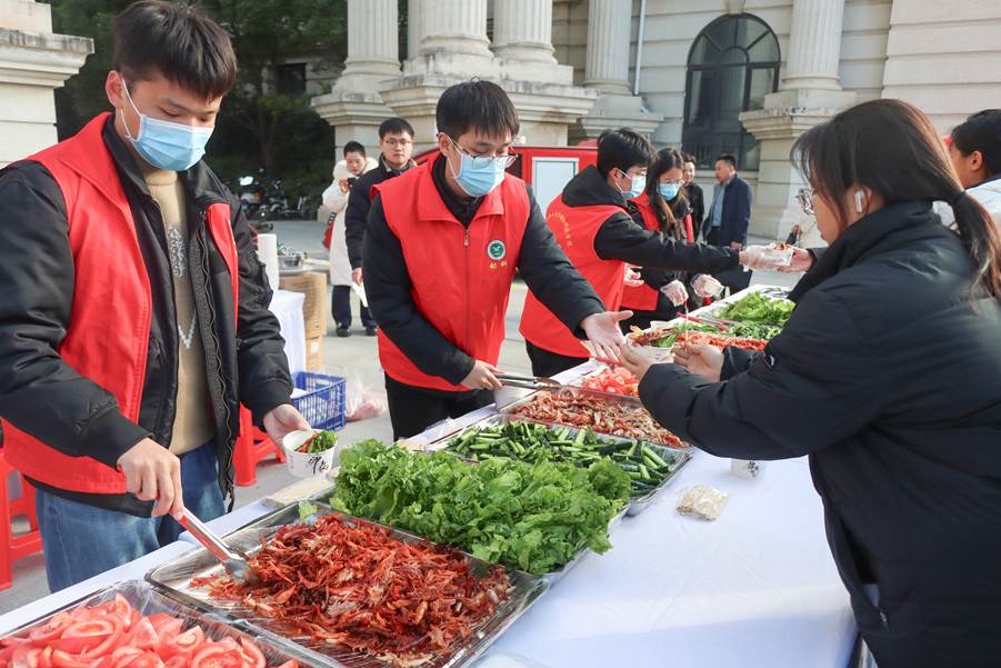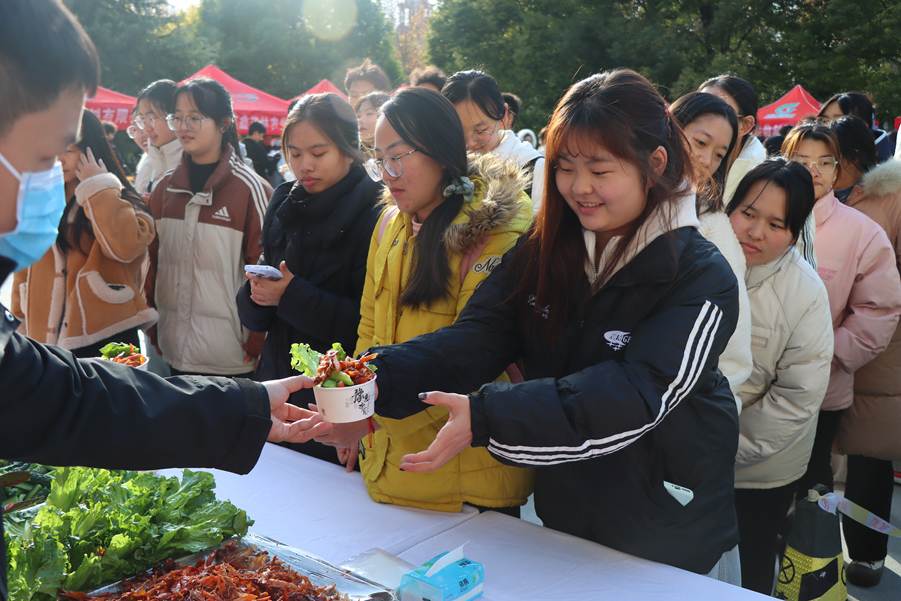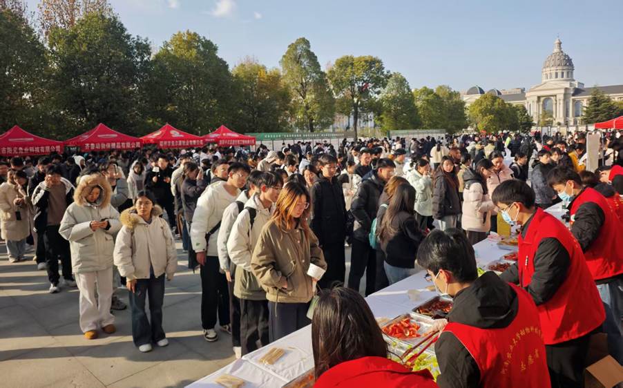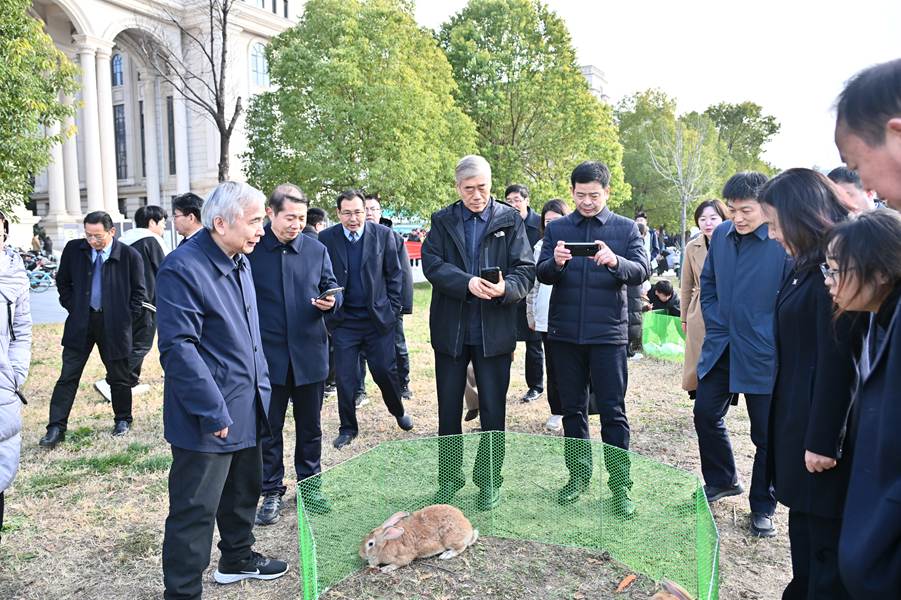 现场四大特色展区精彩纷呈。其中,“兔韵千年”文化展区串联兔与中华文明的共生史,展现农耕文化魅力;“智创未来”科技展区聚焦基因育种、智慧养殖装备等前沿技术,展示国家产业技术最新科研成果;“萌兔互动”体验展区,鼓励师生在沉浸式互动中感受乐趣;人气最旺、热度最高的当属“味享健康”展区,学校联合企业推出20余种兔产品,解读兔肉高蛋白低脂肪的营养优势,现场师生纷纷感叹“美味又健康”。