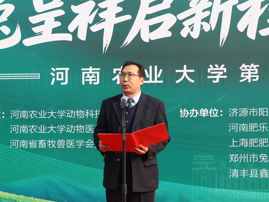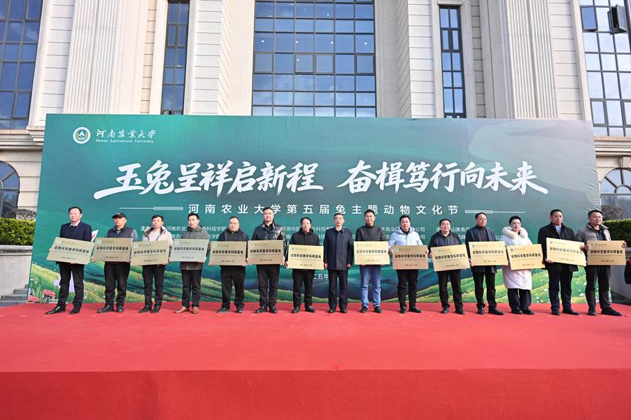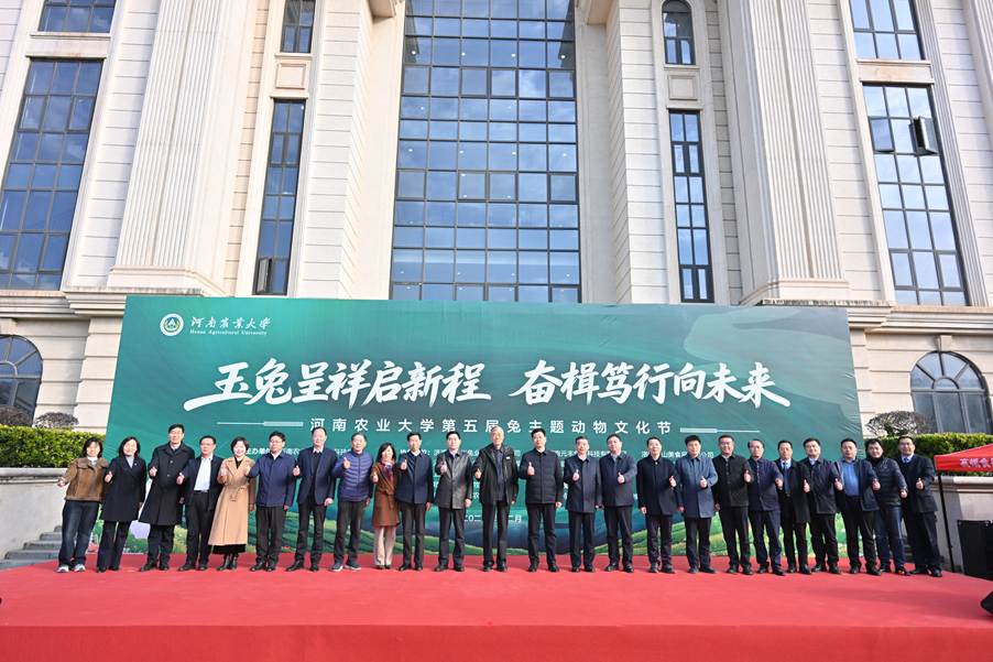 本网讯(通讯员 赵姝灿 许会芬)为深化校企合作、产教融合,传承农耕文明,厚植爱农情怀,服务我国兔产业高质量发展,12月2日下午,河南农业大学在龙子湖校区隆重举办“玉兔呈祥启新程 奋楫笃行向未来”第五届兔主题动物文化节暨河南省兔产业学术研讨会,中国工程院院士、河南农业大学动物科技学院教授康相涛,校党委副书记、工会主席邹松涛,副校长郭战伟、赵鹏,河南省畜牧技术推广总站站长牛岩,中国畜牧业协会兔业分会专家委员会轮值主席、江苏省畜牧总站原站长朱满兴研究员,中国畜牧兽医学会养兔学分会副理事长、中国畜牧业协会兔业分会常务理事兼专家组组长、河北农业大学谷子林教授,河南省畜牧兽医学会兔业分会会长、河南科技大学张自强教授,河南省畜牧兽医学会兔业分会常务副会长、济源阳光兔业段天奎董事长,河南省畜牧兽医学会兔业分会副会长、河南元丰兔业刘振生董事长,及学校相关职能部门负责人、企业嘉宾,动物科技学院和动物医学院师生代表千余人参与活动。本次活动由河南农业大学动物科技学院、动物医学院和河南省畜牧兽医学会兔业分会联合主办。