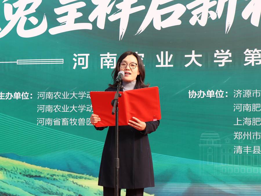 邹松涛宣布河南农业大学第五届兔主题动物文化节开幕。