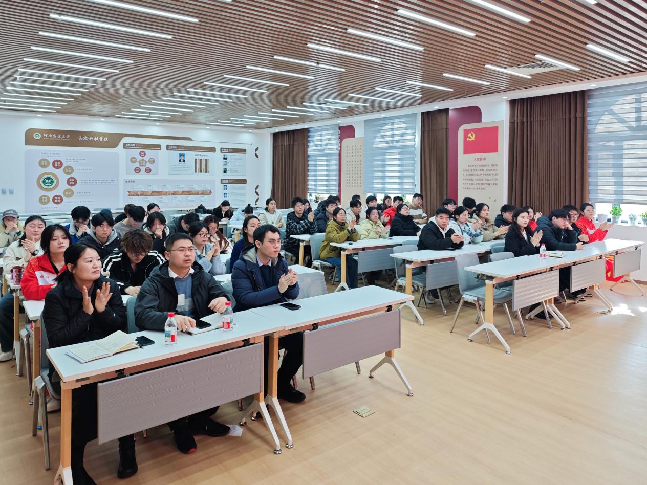 企业领导宋宝瑞讲话,他分享了投身宠物行业的契机,并围绕产品体系、智能工厂等方面对企业情况进行详细介绍。结合政策支持、人才需求、技术研发和服务对象等因素,他指出宠物行业的发展前景广阔,不仅是个人取得成就的优质平台,更是充满活力与创新的服务行业。他号召师生更多地关注宠物行业发展,在产业实践中实现自我价值。