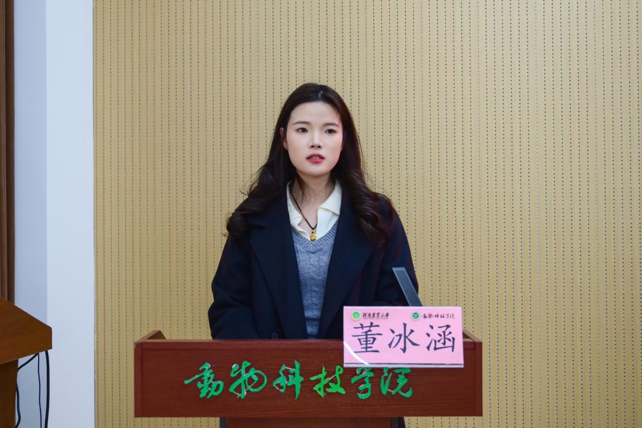 24级专硕董冰涵作为获奖学生代表发言,她向心粮宠物集团的支持以及领导老师的栽培致以真挚谢意。她回顾了入学以来的成长历程,在学业成绩、科研实践、学科竞赛与实践活动等方面取得了斐然佳绩,并表示未来将牢记青年使命与担当,持续深耕专业领域,成为行业所需的复合型人才。