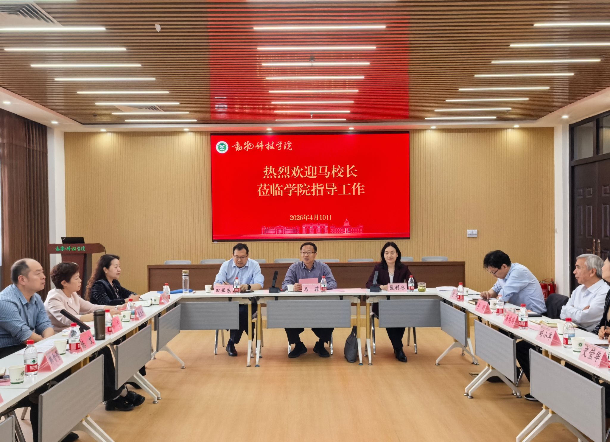 本网讯(通讯员 温心怡) 4月10日下午,副校长马菲深入动物科技学院调研指导工作,与学院领导班子成员、全体中层正职干部及教师代表进行座谈。座谈会由学院党委书记张利冰主持。