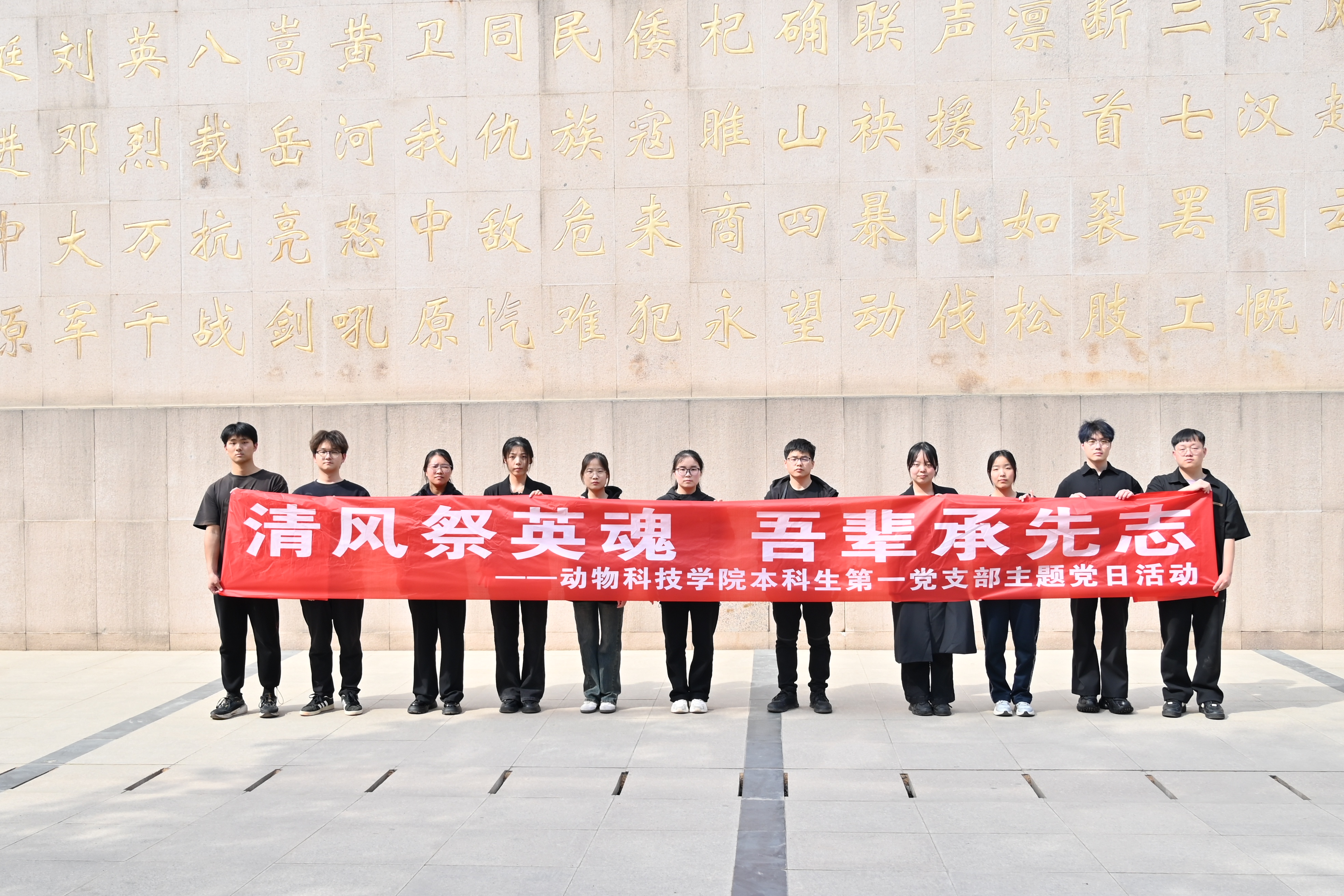在纪念碑前,全体党员庄严肃立,队列严整,神情凝重,向纪念碑行鞠躬礼,唱国歌,表达对先烈的深切缅怀与崇高敬意。全体人员依次向烈士敬献鲜花并打扫烈士墓,在讲解人的带领下,聆听烈士的生平事迹,感悟他们的革命精神。在支部党员、22级动科一班刘洋带领下,全体人员在党旗前庄严宣誓,重温入党誓词。大家纷纷表示,作为新时代青年,将缅怀英烈继忠诚,赓续血脉启新程,把这份家国情怀转化为强国之志,勤学实干担当,在新时代新征程上书写属于青年一代的奋斗答卷。