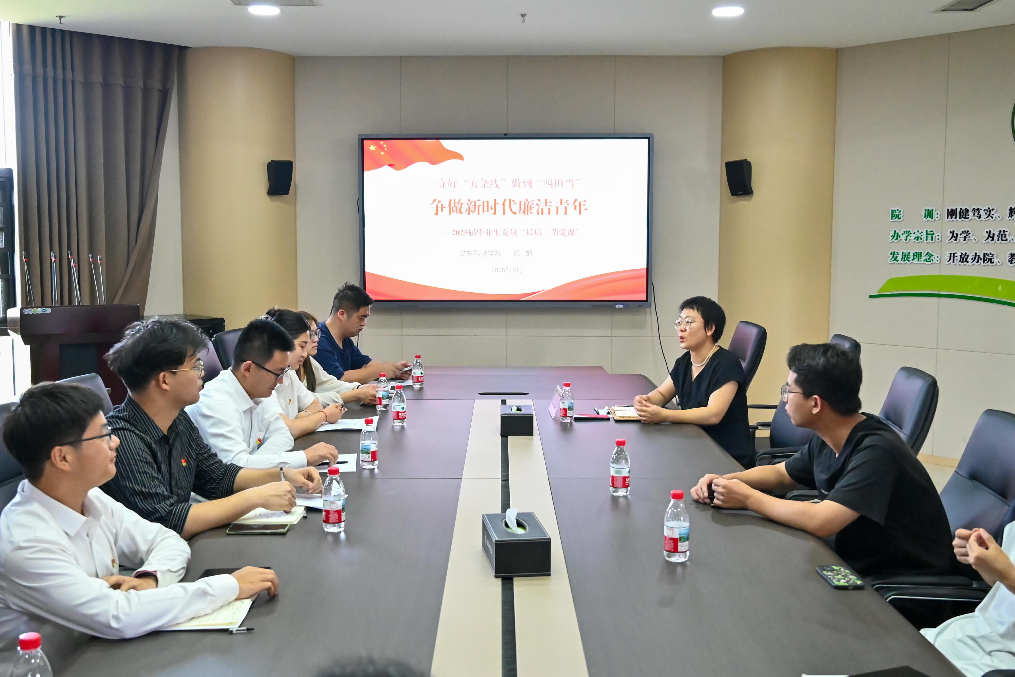 本网讯(通讯员 韦倩倩 )为进一步加强2025届毕业生党员的党性修养,强化使命担当意识,引导毕业生党员在奋斗征程中永葆政治本色,6月12日上午,我院于龙子湖校区第一实验楼501会议室举办2025届毕业生党员“最后一节党课”活动。