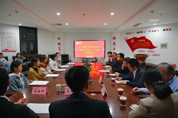 正大集团代表文俊雅、院长李明与入围同学签订第三方协议