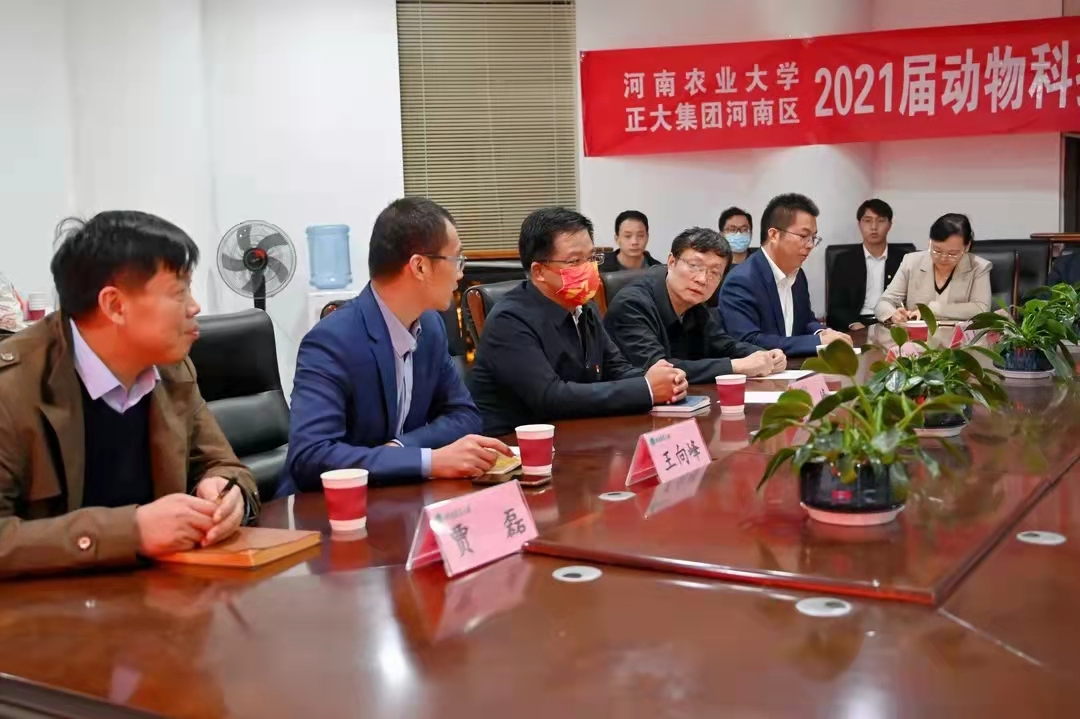 本网讯(通讯员 韩笑) 为深化校企合作,探索以就业为导向的“订单式”人才培养模式,根据校企双方达成的合作协议,10月26日下午,正大集团第一期河南农业大学“正大班”(动物科学专业)在龙子湖校区举行宣讲、面试选拔及签约活动。校党委学工部部长、学生处处长徐峰,教务处副处长茹广欣,平顶山正大有限公司总经理张亚,开封正大有限公司总经理王向峰,正大集团河南区饲料养殖事业人事主管文俊雅,洛阳正大食品有限公司人事主管张振华,正大集团河南区招聘中心人事主管陈柏希及动物科技学院党委书记贾磊、院长李明、党委副书记郭娟、副院长付彤出席相关活动。