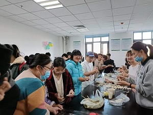 十二月,冬至到,家家户户吃水饺。活动现场,每一位同学都积极参与其中,共同精心布置活动现场。随后,大家开始大展身手,各样千姿百态的饺子齐齐登场,每一个小巧的饺子上都凝聚着欢乐和笑语。转眼一望,学院老师正和同学们一起交流,分享如何制作花样饺子。当饺子端上餐桌后,大家一边品尝自己包的饺子,一边和着音乐歌唱。你来我往,气氛融洽热烈。
