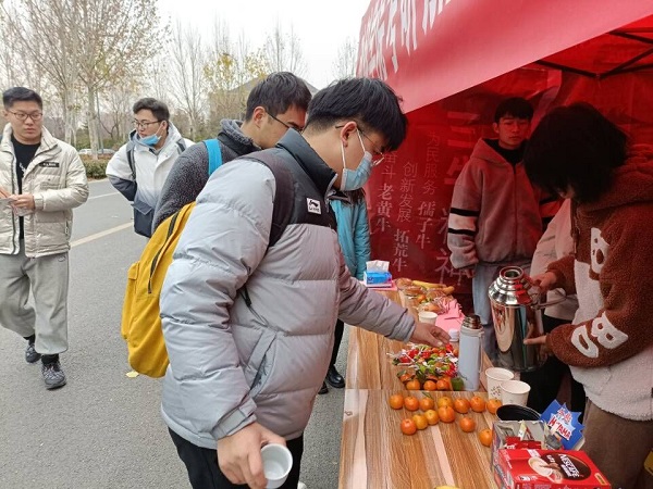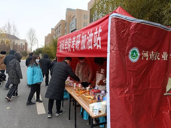 本网讯(通讯员 杨洁洁 杨 冉)12月25日中午,寒风凛冽,但第一实验楼北301、330会议室内以及第二餐厅门前气氛活跃,温暖人心。我院为助力考研学子,在第一实验楼301、330会议室、学习氧吧自习室等地为风景园林与艺术学院考研学子设立温馨考研休息室,在第二餐厅门前设立动科学子考研加油站,在我院团委副书记黄璞老师带领下,大家一道为考研学子送温暖,助力全体考生一研为定、马到功成。