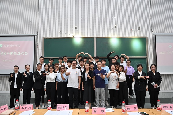本网讯(通讯员 张 玥) 6月21日,我院在龙子湖校区大教室七举行2021年学生干部换届大会。团委书记韩笑、团委副书记黄璞、学生会等各部门、班级学生干部代表参加会议,大会由侯路主持。
