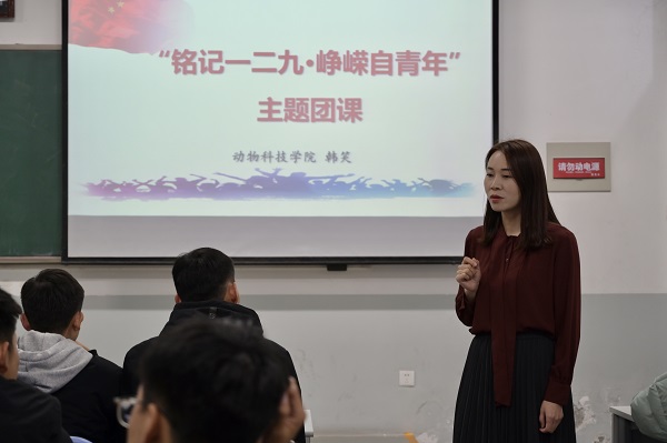 辅导员韩笑为2020级动物科学专业本科生上主题团课