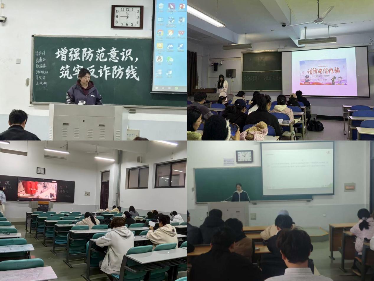 各班结合当前电信网络诈骗典型案例,围绕刷单返利诈骗、校园贷诈骗、冒充客服退款诈骗、游戏账号交易诈骗等高发类型,详细讲解诈骗手段、识别方法与应对措施。通过播放反诈宣传视频、剖析真实受骗案例,提醒同学们牢记“三不”原则:不轻信、不透露、不转账。