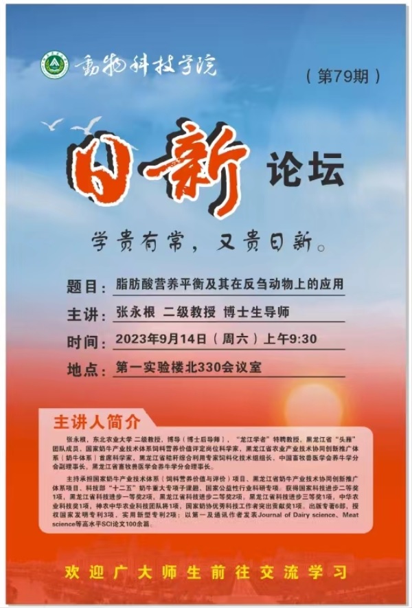 东北农业大学张永根教授将做客我院“日新论坛”(第79期)