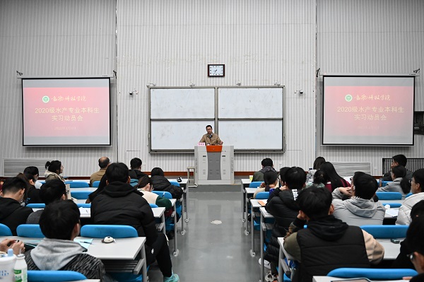 本网讯(通讯员 杨冉)为进一步加强我院实习工作管理,切实保障实习质量,保证2020级水产专业实习顺利开展,4月3日晚,我院于繁塔楼大教室四召开2020级水产专业实习动员大会。我院副院长付彤,水产与经济动物养殖系李国喜老师、于光晴老师、杨振江老师、董鹏生老师,辅导员赵姝灿,兼职辅导员刘伯帅出席会议,会议由赵姝灿主持。