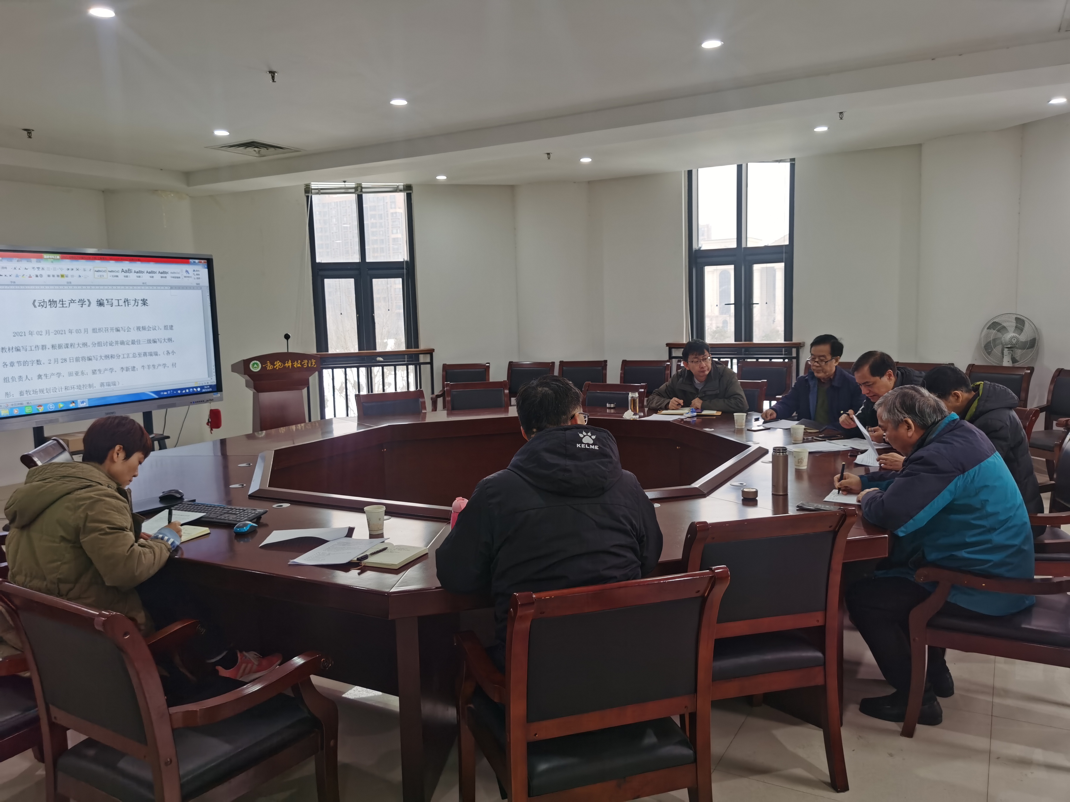 本网讯(通讯员  李东华)2月25日,由我院康相涛教授担任主编的河南省本科高等学校“十四五”规划教材《动物生产学》编写研讨会在第一实验楼北301召开。会议邀请了理学院曹殿立教授、机电学院王德福教授和我院教学督导王成章教授等3位国家级规划教材的主编作为指导专家。院长李明、副院长付彤及教材编写各小组负责人参加研讨,会议由李明主持。