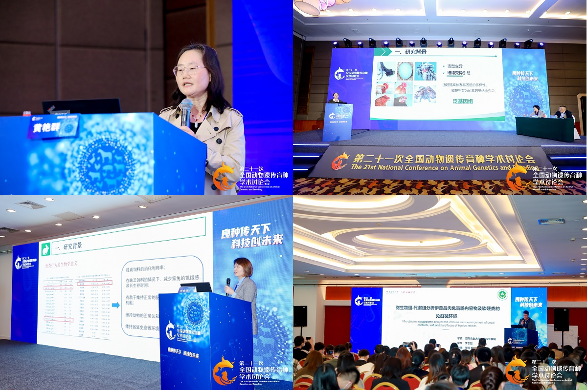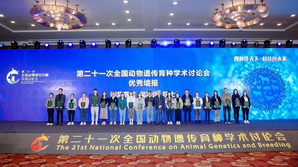 本网讯(通讯员 张彦华)10月13-17日,第二十一次全国动物遗传育种学术讨论会在北京举办,我院组织50余位教师和研究生参会学习。其中黄艳群教授、李文婷副教授、许会芬老师和李志超博士研究生分别做专题报告分享科研成果;李文婷副教授的论文《基于泛基因组解析鸡生长性状主效基因IGF2BP1原因突变》荣获“优秀论文奖”;2021级博士研究生李志超的论文《微生物组-代谢组分析伊普吕肉兔盲肠内容物及软硬粪的免疫微环境》荣获“青年学者旅行奖”;2021届硕士毕业生唐贺贺的论文《鸡血清碱性磷酸酶(ALP)标签SNP的鉴定》荣获“优秀墙报奖”。
