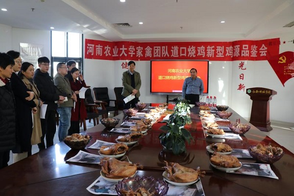 本网讯(通讯员 蒋瑞瑞 李东华)11月24日,由我院主办的“道口烧鸡新型鸡源品鉴会” 分别在我校龙子湖校区第一实验楼北330会议室和滑县金龙商务酒店两地如期举行。